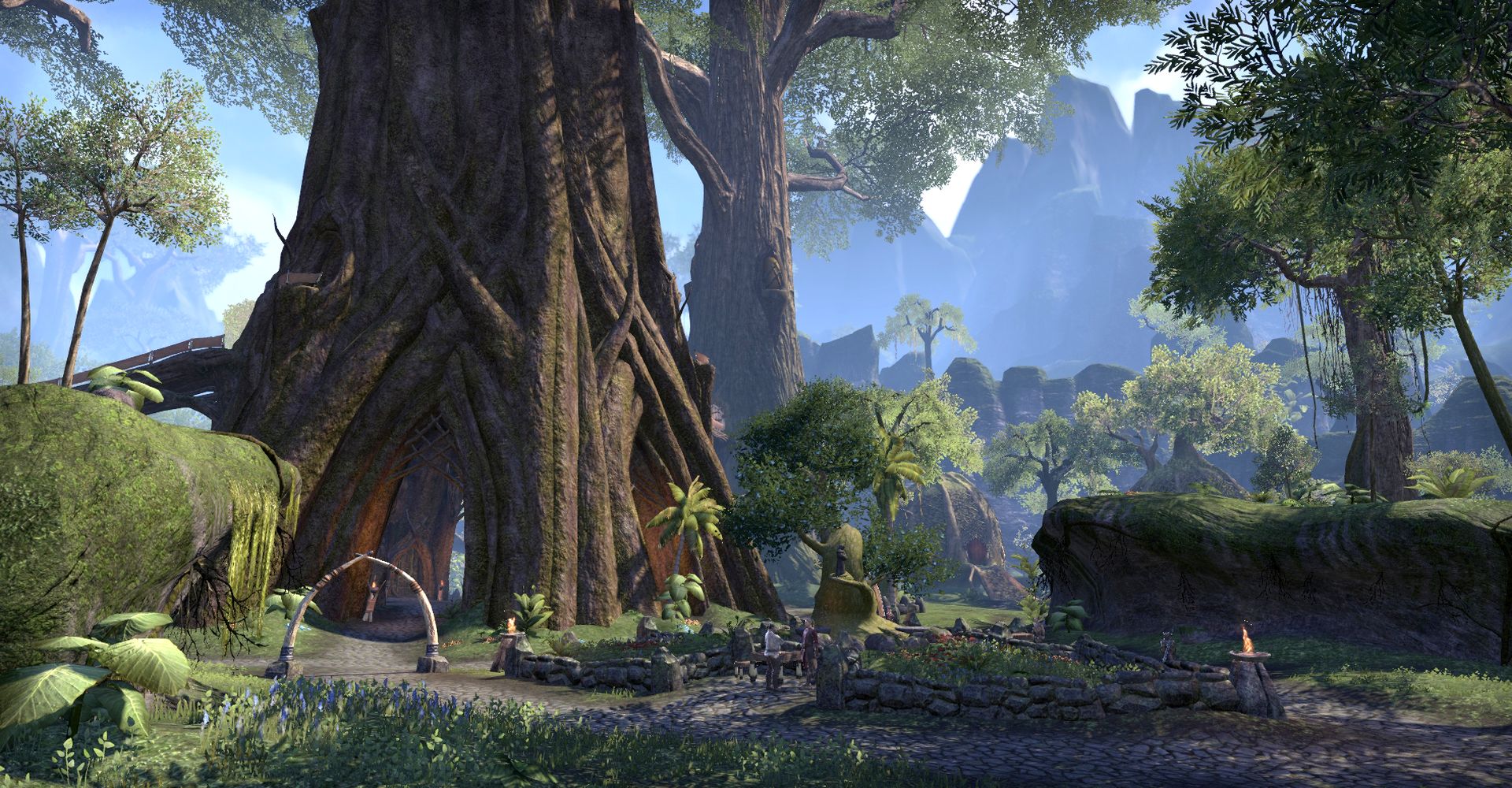 In this region primarily inhabited by Wood Elves lies Elden Root, the capital of the Aldmeri Dominion. It is located in the interior and surrounds what is arguably the largest tree in Tamriel. The rest of the settlement extends between the roots, giving it a naturally grown appearance.