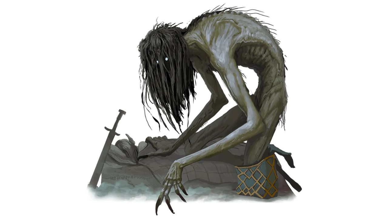 According to legend, the Bagman was once an adventurer himself who wanted to escape his fate and hid in the Bag of Holding while abandoning the rest of his party. The strange powers of this magical space eventually transformed him into the monstrous creature seen in the illustration.