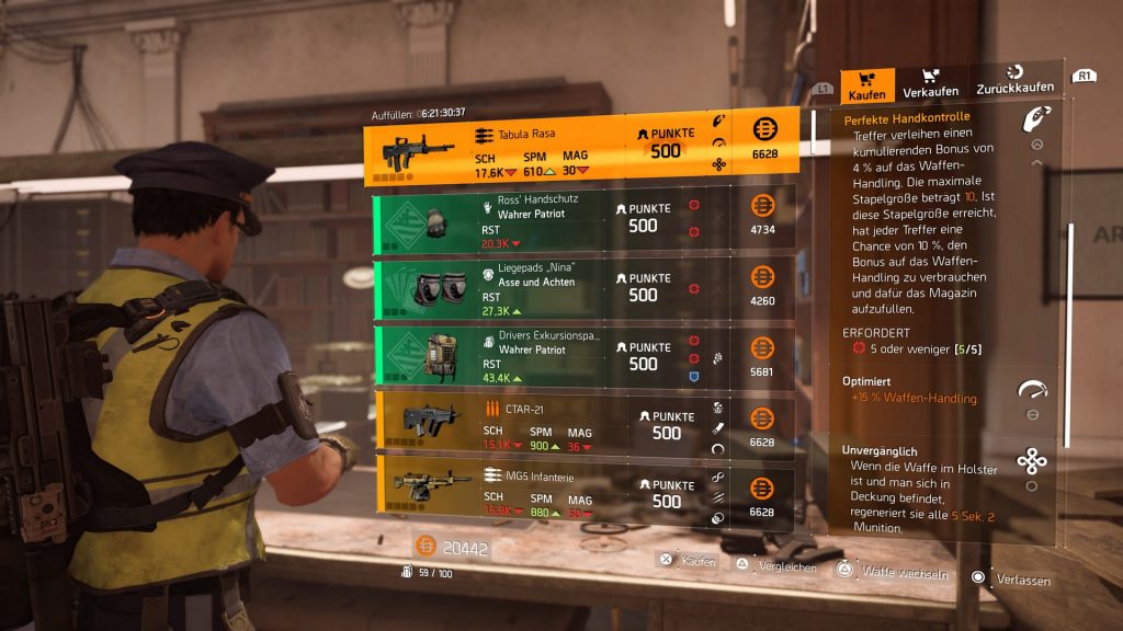 The named weapon “Tabula Rasa” also sounds fun. The talent “Perfect Hand Control” increases precision on hits and gives a chance to refill the current magazine. With the extra ammunition, this rather small LMG can keep up with the heavyweights of the class.