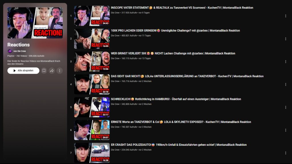 What kind of channels are these? “Die Crew” and “Richtiger Kevin” are indeed channels that edit and post MontanaBlack’s content from his Twitch streams, but they are not actively operated by MontanaBlack.
