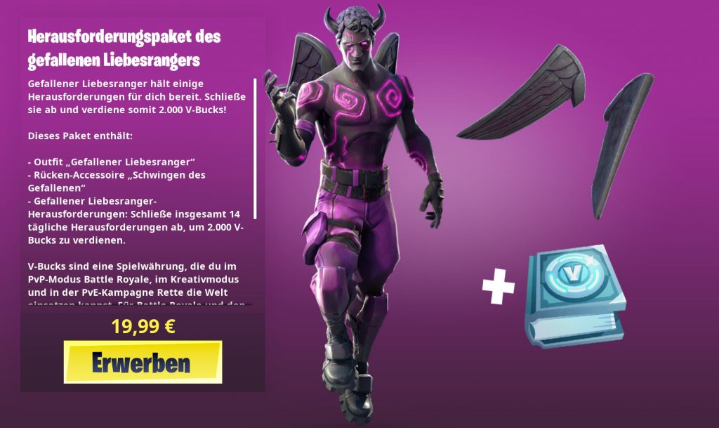 - And there is a special skin for €20, where you can get the purchase price back in V-Bucks if you play hard enough. Such a thing has never happened before.
