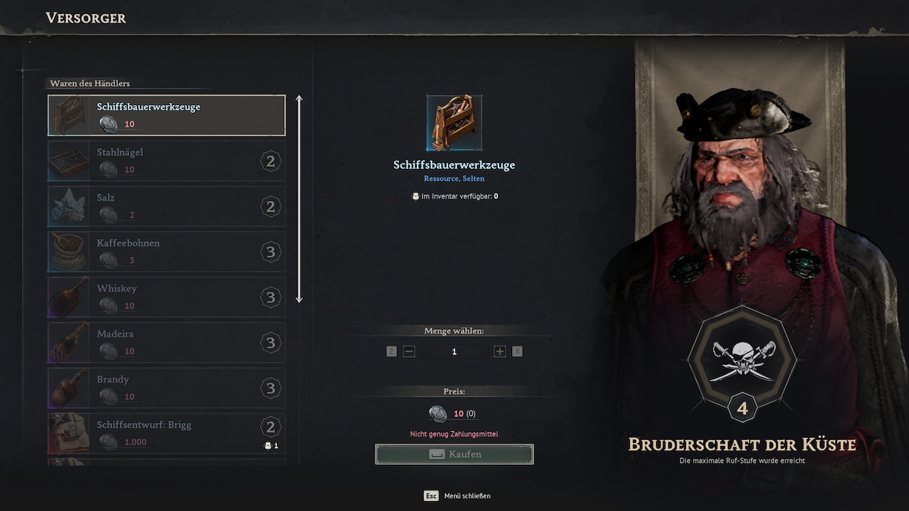 But aside from their positions, their assortment is particularly interesting because if you want to go far as a pirate, you must raise their rank, and to achieve that you need to earn reputation. We will now show you the assortment of all factions and explain how you can quickly gather reputation with the respective factions.