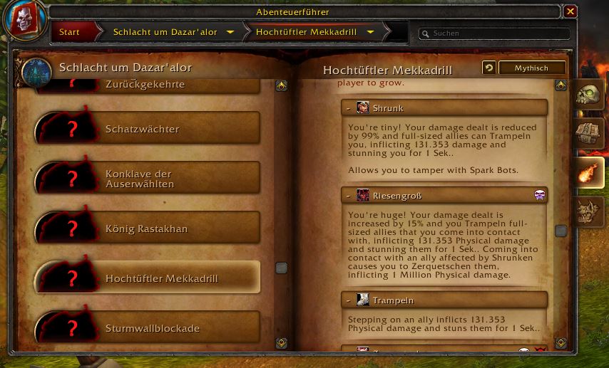 How to encounter Mekkatorque: The Siege of Zuldazar is asymmetrically structured, Horde and Alliance experience the raid a bit differently. However, the progression according to the current PTR state is linear. In both cases, Mekkatorque is the seventh boss of the raid.