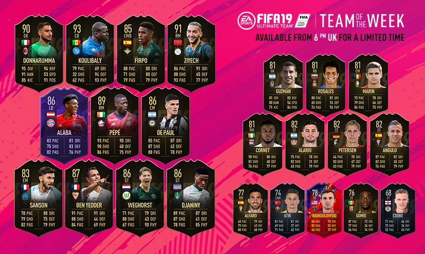 Die besten Karten im TOTW 36: Die Karte mit dem höchsten Gesamtrating erhält in dieser Woche Koulibaly (93). Ebenfalls starke Inform-Karten haben Ziyech (91), Donnaruma (90), Pepe (89) und Ben Yedder (87).
