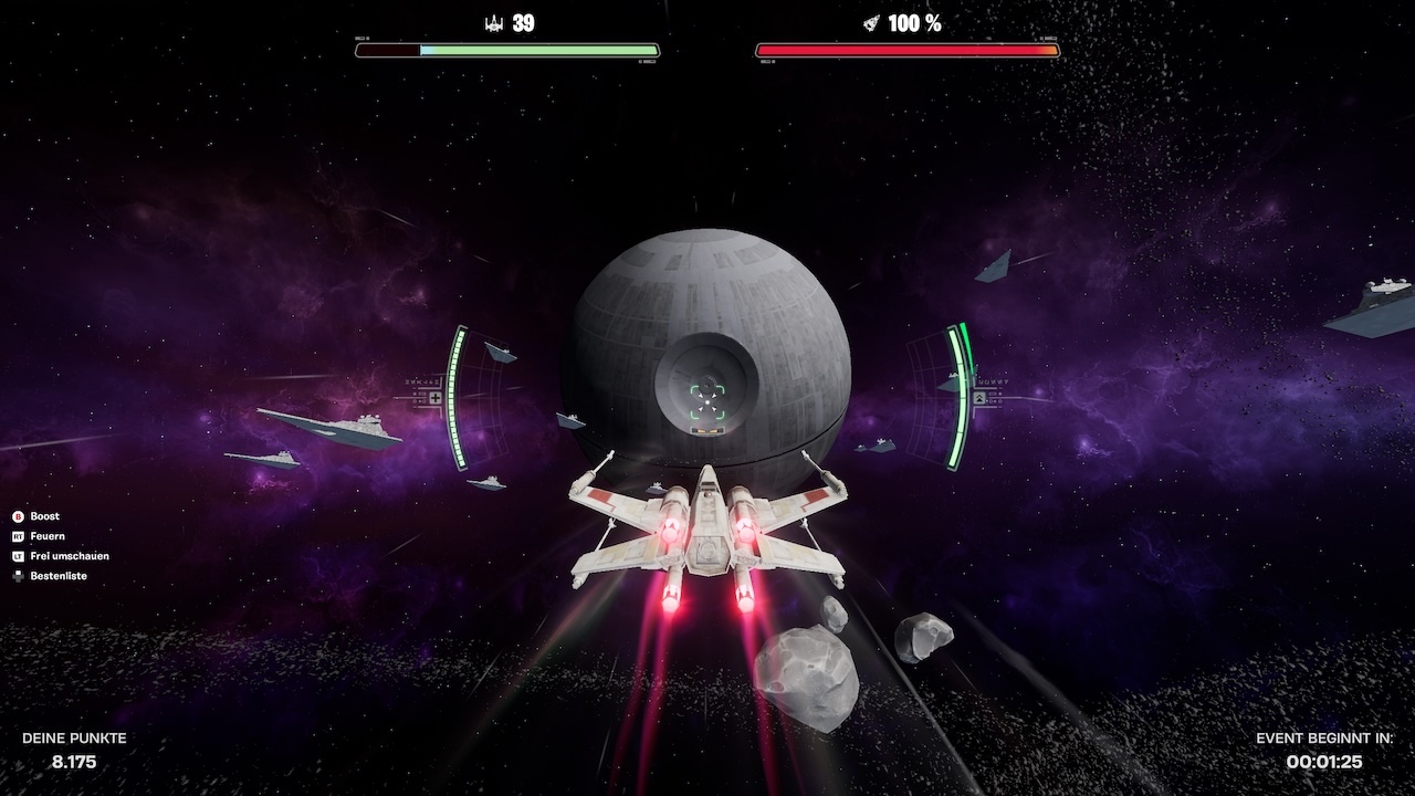 Was ist das für ein Event? Bei dem Event werden Fans damit beauftragt, den Todesstern über der Map von Chapter 6 Season 3 zu vernichten. Imperator Palpatine möchte die aktuelle Map zerstören, und damit das nicht passiert, werden Fans sich in einem Trupp aus vier Spielern zusammenschließen müssen, um den bösen Plan der Sith zu durchkreuzen.