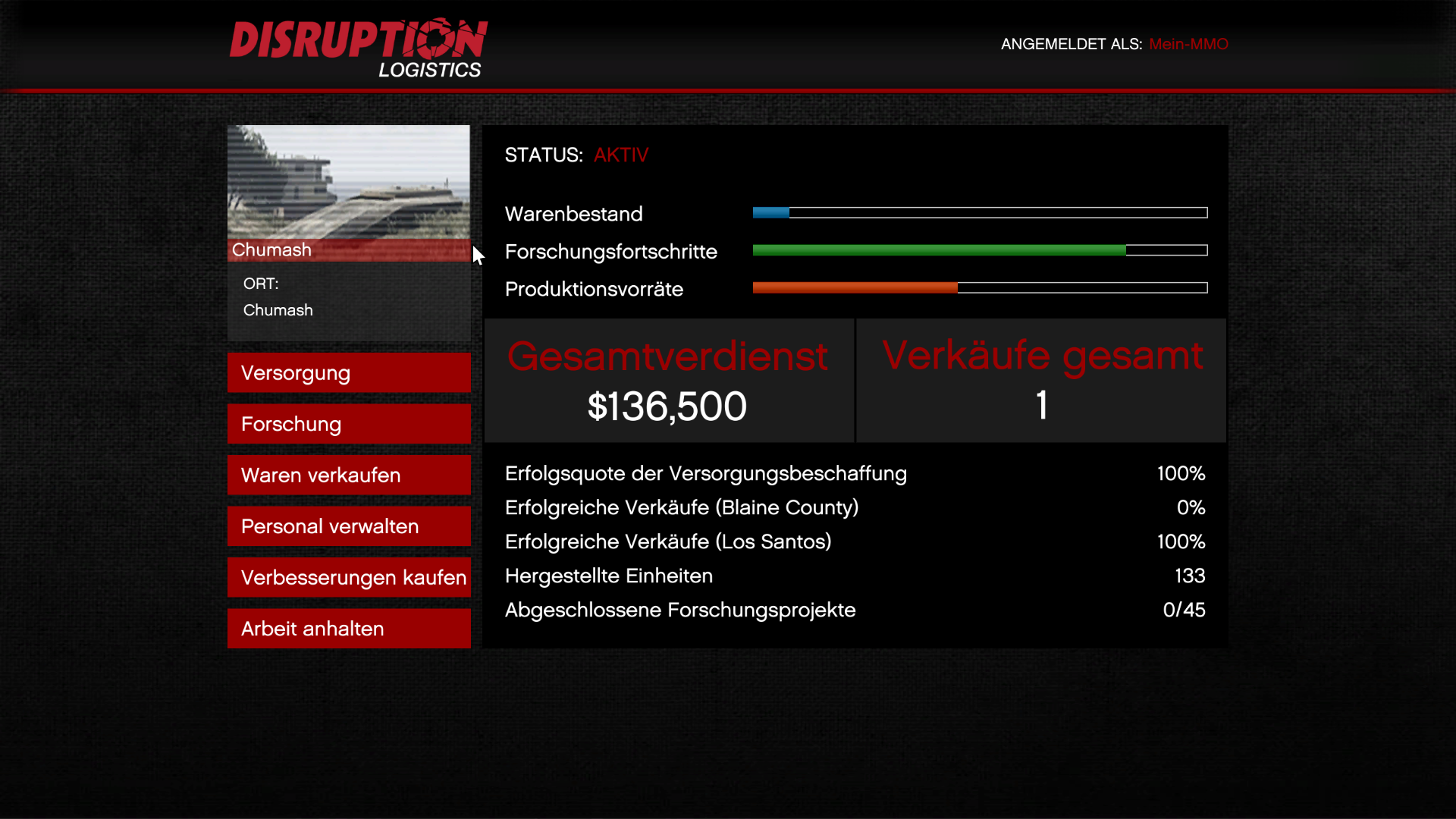 Habt ihr euer Bunker-Business am Laufen, könnt ihr die hergestellten Produkte verkaufen. Im Normalfall verdient man bei einem vollen Bunker rund 1 Mio. GTA$. Mit den Boni gibt es nun aber rund 2 Millionen.