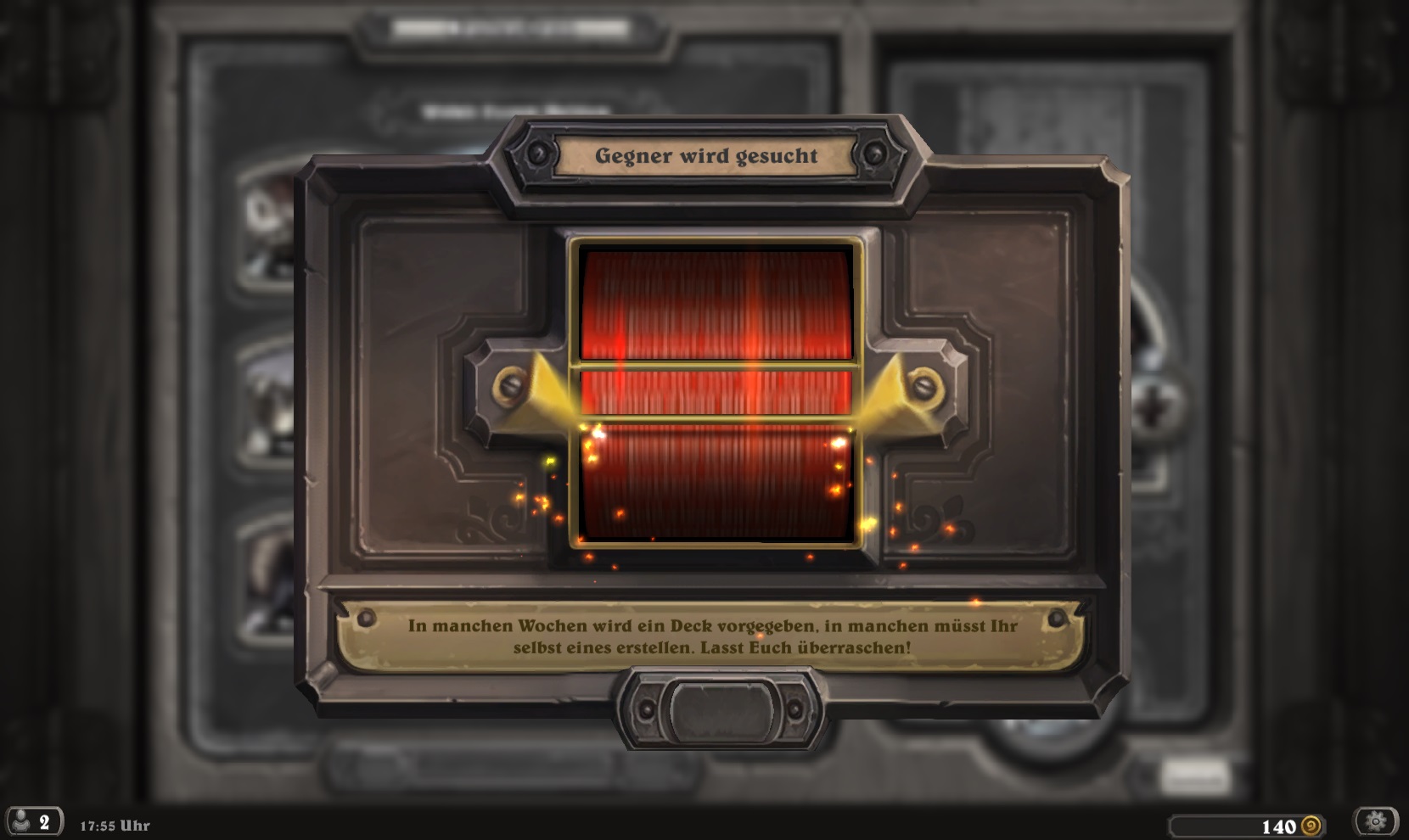 Aktuell: Gegenwärtig tut sich in Hearthstone leider nichts und es können keine Spiele gefunden werden. Das Kartenchaos hat wohl für einige Probleme bei den Servern gesorgt. Blizzards Mitarbeiter versuchen bereits fieberhaft, den Fehler zu beheben.