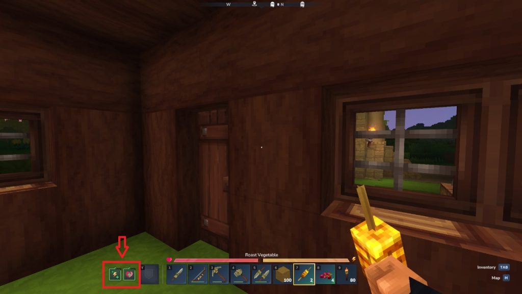 Wenn ihr die Ressourcen für Fackeln sparen wollt, könnt ihr einfach eure linke Hand benutzen. Wenn ihr in eurem Inventar seid, könnt ihr einfach eine Fackel in eure linke Hand packen, sodass sie euch dauerhaft Licht spendet. Das eignet sich super für die Höhlenerkundung, wenn ihr nicht überall Fackeln platzieren, aber trotzdem etwas sehen wollt.