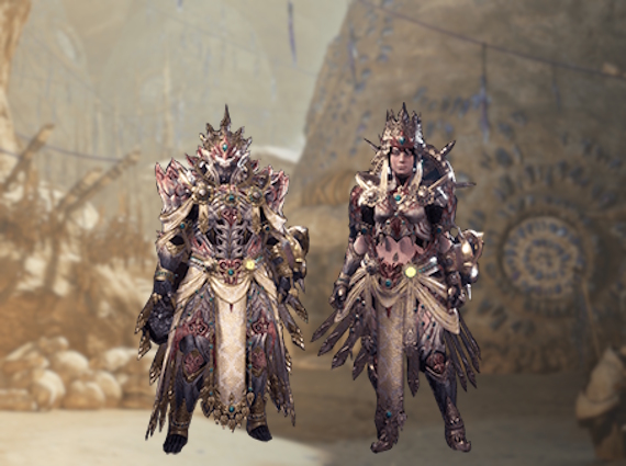 Ein toller Gegenpart für das Velkhana-Outfit ist dieses Set. Für das Shara Ishvalda Alpha + Set braucht ihr die Erweiterung Iceborne. Auch hier müsst ihr euch dem namensgebenden Ungetüm auf dem Meisterrang mehrfach entgegenstellen.