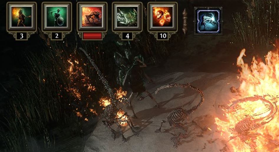 So kommt ihr durch die Akte: Während ihr die Kampagne mit ihren vier Akten durchspielt, erweitert ihr eure Armee aus Minions. Die Minions unterstützen euch im Kampf und sind der Hauptbestandteil eures Builds. Kernpunkt ist der Skill „Flammenschädel“, den ihr im Verlauf der Kampagne bekommt. Beachtet, dass ihr zwischendurch Unterstützungsgemmen in andere Skills setzen müsst.