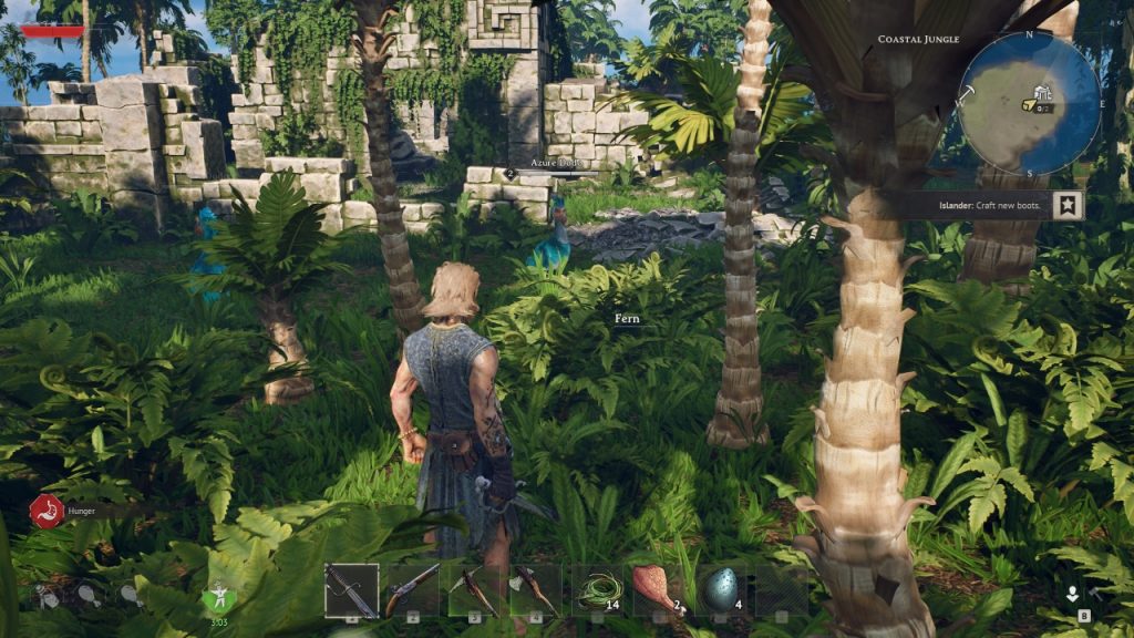 Was in den ersten Trailern und Screenshots nach etwas ganz Frischem aussah, ist in den ersten Minuten der Demo ein eher dröges Survival-Spiel: Wir sammeln Steine, Holz und andere Ressourcen vom Boden auf. Für Nahrung jagen wir die anderen Bewohner unserer kleinen Insel – Dodos und Wildschweine.