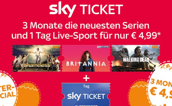 Serien- und Sport-Fans aufgepasst. Das Sky Entertainment Ticket könnt ihr euch jetzt für drei Monate für einmalig 4,99 Euro im Sky-Angebot sichern.