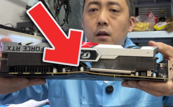 Techniker rettet eine Grafikkarte, die aussieht, als hätte der Hulk sie in die Finger bekommen