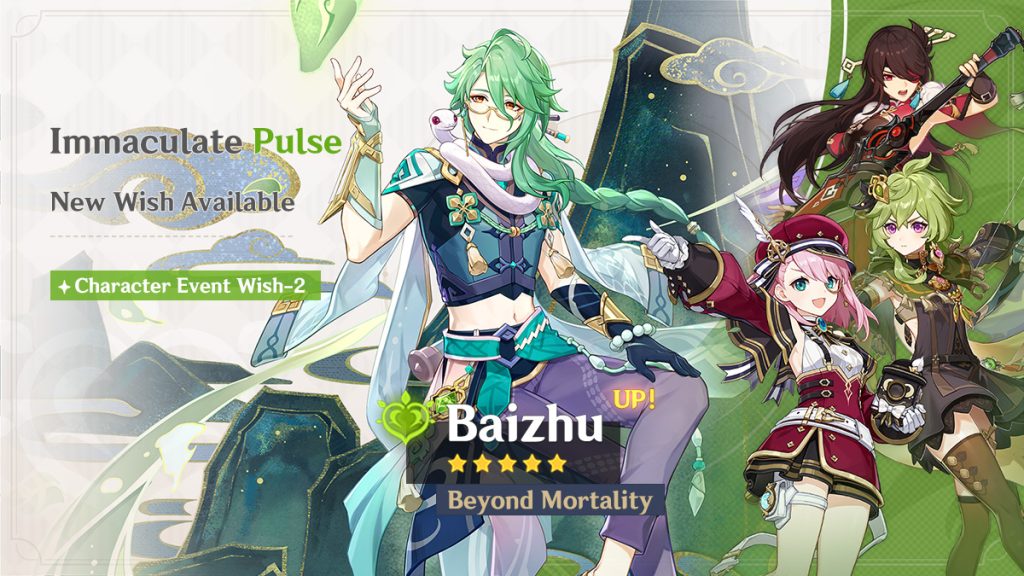 - „Pulsierendes Leben“: mit Baizhu als 5 Sterne-Charakter; Charlotte, Collei und Beidou als 4 Sterne-Charaktere