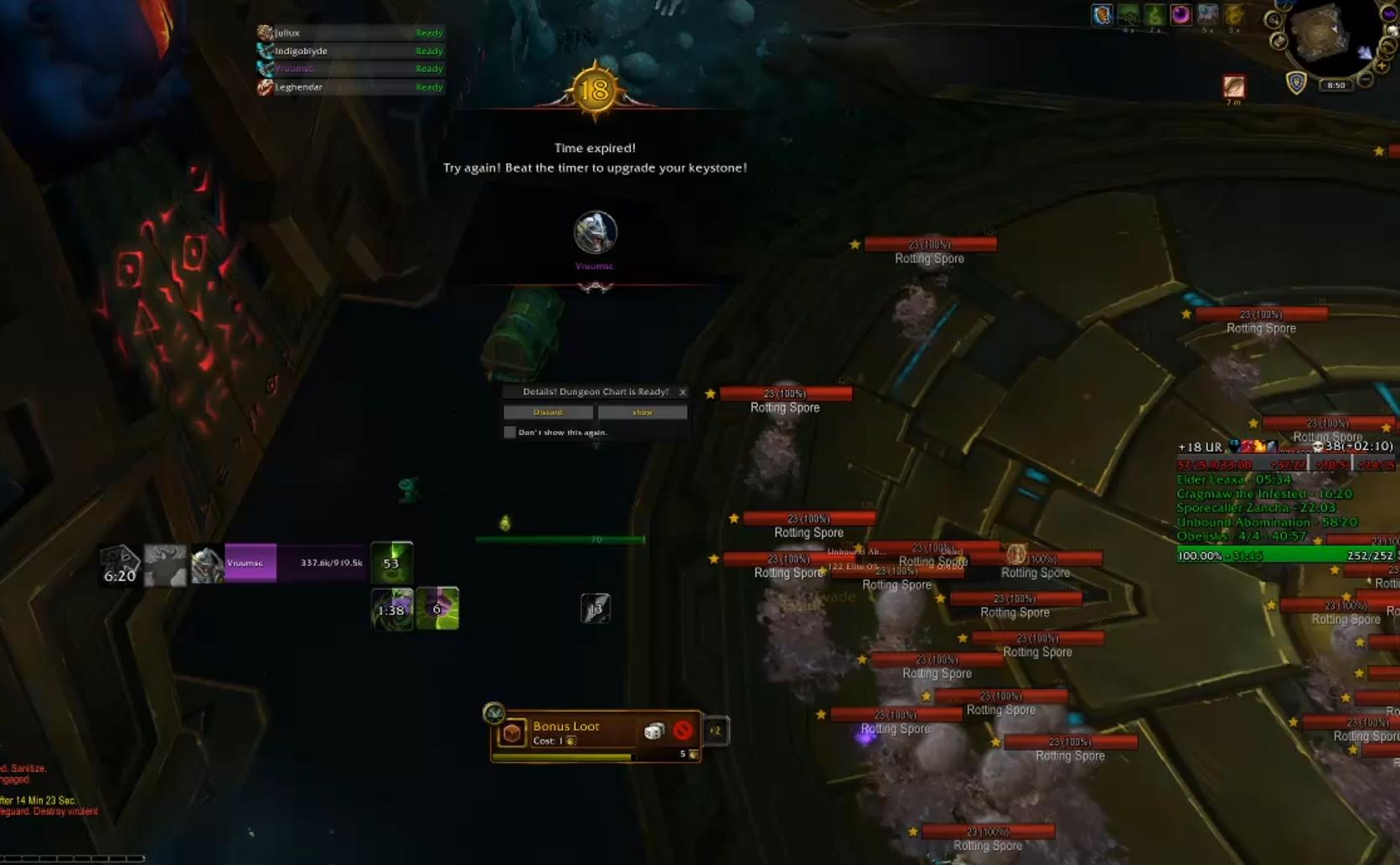 Warum hat er keine neuen Mitspieler gesucht? Bei einem „Mythisch+“-Dungeon ist es nicht möglich, nachträglich noch neue Spieler einzuladen. Lediglich die 5 ursprünglichen Spieler, die den Dungeon gestartet haben, können diesen betreten. Wenn also auch nur ein Spieler entscheidet, die Gruppe vorzeitig zu verlassen, lässt sich das nicht mehr ausgleichen. Daher geht man solche Dungeons eigentlich mit Leuten an, denen man zumindest soweit vertraut, dass sie den Run bis zum Ende durchziehen.