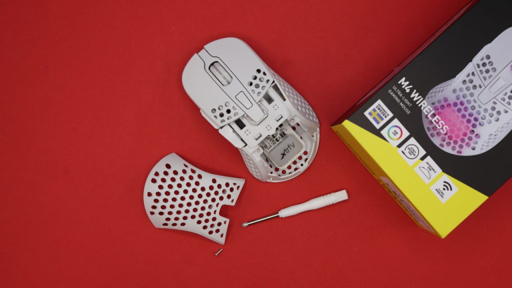 Was ist besonders? Die Maus von Xtrfy lässt sich ergonomisch anpassen: Zum einen könnt ihr die Schale bzw. das Cover der Maus austauschen und die Maus dadurch steiler oder flacher machen.